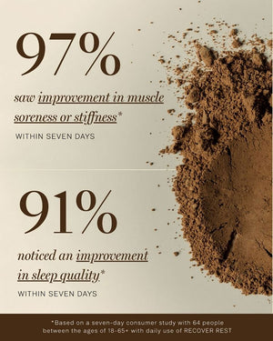 Based on a 7-day consumer study with 64 people between the ages of 18-65+ with the recommended daily dose of RECOVER REST. Individual results may vary. Individual results may vary.